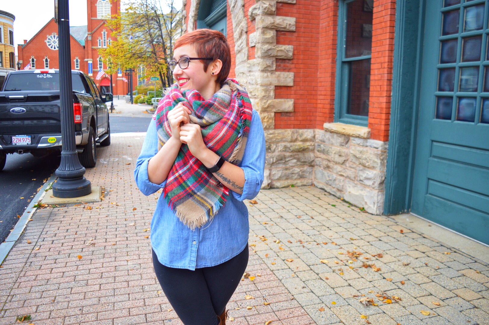 Seriously love this scarf! Currently I use it as a blanket draped on one of our chairs. See how versatile it is?! One time I used it as a picnic blanket. It’s definitely the perfect accessory for this cold season! Something about plaid scarves and chambray shirts reminds me of Fall. Once you get one, I highly recommend you read this post to learn how to tie it! Looking for more holiday scarves? Check out my Must-Have post for more!